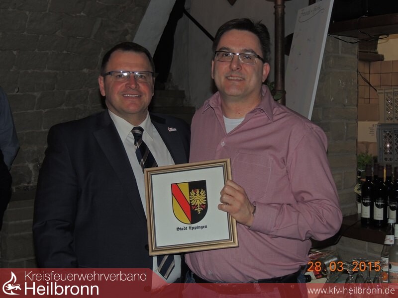 Für seine Verdienste um die Freiwillige Feuerwehr Eppingen erhielt der langjährige Feuerwehrmann und amtierende Stadtkommandant der Freiwilligen Feuerwehr Eppingen, Martin Kuhmann, am Samstag, 28. März das Seidenwappen der Stadt Eppingen. „Feuerwehrdienst ist wie kaum ein anderer Dienst an der öffentlichen Sache, an Gemeinde und Gemeinschaft, ein selbstloser Dienst am Nachbarn und am Nächsten“, lobte Oberbürgermeister Klaus Holaschke bei der Feier anlässlich des 50. Geburtstags. Martin Kuhmann habe als Feuerwehrmann in unzähligen, oft mit erheblichen Gefahren verbundenen Einsätzen ein beispielhaftes Maß an Bürgersinn gezeigt.