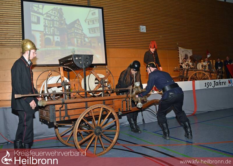150 Jahre später, stellte die Theatergruppe der heutigen Wehr die Versammlung damals im Lamm authentisch nach. Auf den Tag genau nach 150 Jahren luden die Stadt und die Freiwillige Feuerwehr am Donnerstag Gäste in die Sturmfederhalle ein, um mit ihnen dieses stolze Datum zu feiern.
