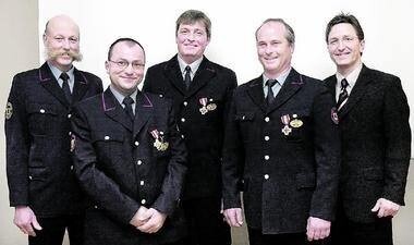 Für jeweils 25-jährige Zugehörigkeit zur Freiwilligen Feuerwehr Nordheim ehrten Bürgermeister und Kommandant die Oberfeuerwehrmänner Rainer Adelhelm und Werner von Olnhausen (der an diesem Abend verhindert war), den Löschmeister Werner Plieninger und den Oberlöschmeister Ernst Kühner. Als Zeichen der Anerkennung erhielten sie das Feuerwehr-Ehrenzeichen in Silber.