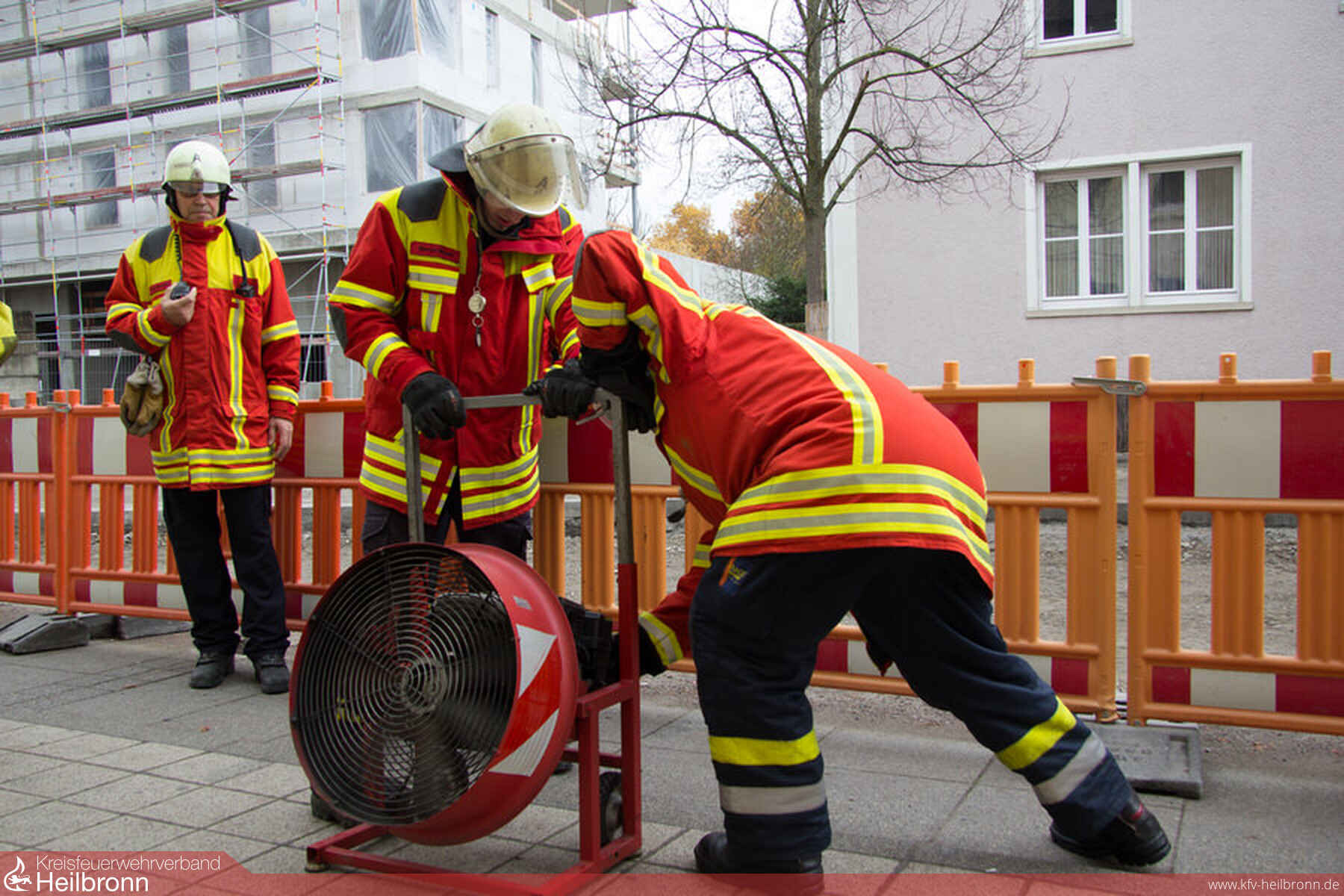 Im theoretischen Teil wurden die Einsatzgrundsätze, Einsatztaktik, Gefahren und Gerätekunde erläutert und den Teilnehmern vermittelt. Spezielle Einsatzlagen, wie zum Beispiel verrauchte Sicherheitstreppenhäuser von Hochhäusern oder Großtiefgaragen wurden durchgesprochen und erarbeitet.Im Anschluss an den Theorieteil ging es zu einem städtischen Abrisshaus in die Friedrichshallerstraße. Dort wurden verschiedene Szenarien live und mit Übungsnebel praxisnah getestet. Vom verrauchten Zimmer im 2. Obergeschoss bis hin zum kompletten Wohngebäude wurden alle Lüftertypen, welche der Feuerwehr Bad Friedrichshall zu Verfügung stehen, eingesetzt und beübt.