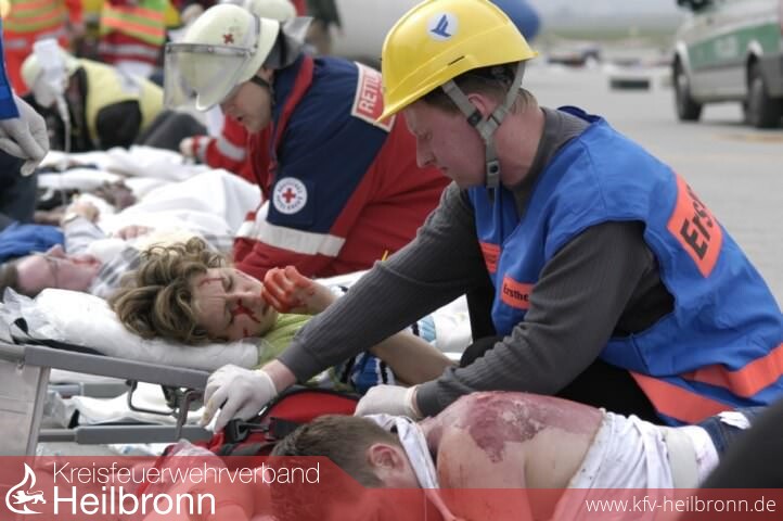 Der hatte das Inferno ein gutes dreiviertel Jahr lang geplant und organisiert, um mit 650 Einsatzkräften, 150 Einsatzfahrzeugen und rund 140 Verletzten-Darstellern realitätsnah durchzuspielen, wie im Ernstfall schnellstmöglich zu reagieren ist. Ein gigantischer Test für bestehende Notfallpläne. Beteiligt waren neben der Flughafenfeuerwehr freiwillige Wehren aus den Anrainergemeinden, die Deutsche Rettungsflugwacht, das DRK, die US-Feuerwehr am Flughafen, Polizei, Bundesgrenzschutz, Staatsanwaltschaft . . .