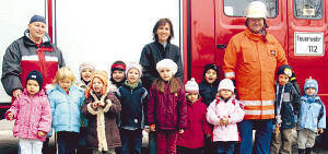 Großes Interesse haben die Grombacher Kindergartenkinder mit ihren Erzieherinnen gezeigt, als sie kürzlich das Feuerwehrgerätehaus besichtigt haben. Feuerwehrkommandant Lothar Fleck und Rolf Kreiter von der Altersmannschaft konnten viele Fragen der neugierigen Jungen und Mädchen interessant beantworten.