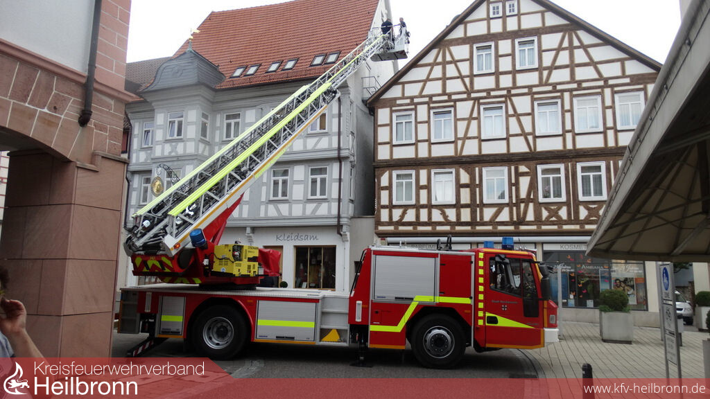 Eine besondere Ausbildung für Maschinisten der 2011 in Dienst gestellten Drehleiter fand am 02. August statt. Die Drehleiter von Iveco-Magirus dient der Feuerwehr zur Menschenrettung und Brandbekämpfung und verfügt über eine Rettungshöhe von 30 Metern. Am Leiterpark angebracht ist ein Rettungskorb für vier Personen mit fest verbautem Wasserwerfer und einer Halterung für eine Krankentrage.