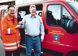 Die Feuerwehr Grombach hat einen Mannschaftstransportwagen. Am Samstag übergab Reinhold Müller vom Förderverein der Feuerwehr dem Abteilungskommandanten Lothar Fleck den Schlüssel. Die Stadt Bad Rappenau hatte den Einkauf der Grombacher Feuerwehr nicht unterstützt, weil sie einen Mannschaftstransportwagen für nicht notwendig hält.