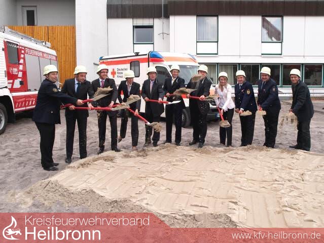 Für den Landkreis nahm Erster Landesbeamter Lutz Mai am Spatenstich teil, für das Land Baden-Württemberg Landesbranddirektor Hermann Schröder, für das Deutsche Rote Kreuz der stellvertretende Kreisvorsitzende Bernhard Steck sowie der Geschäftsführer des DRK-Heilbronn, Ludwig Landzettel.