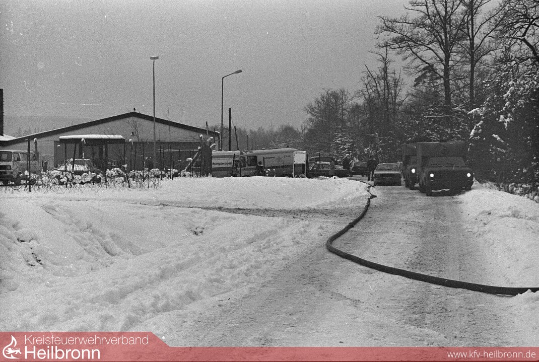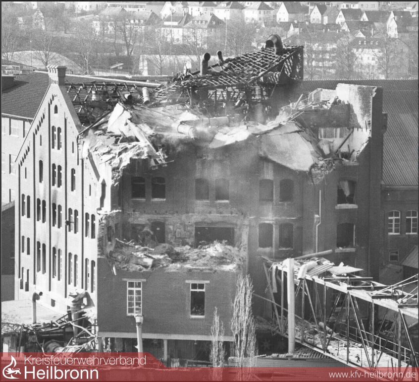 1974: Dämpfe, die beim Verfugen des Hallenbodens entstehen, entzünden sich, und es entsteht ein Großbrand im neuen Dessert-Werk der Südmilch AG in Heilbronn-Neckargartach. Ein Arbeiter kommt ums Leben. Die Kripo ermittelt wegen der Ursache des verheerenden Feuers. Der Schaden beträgt mehrere Millionen Mark. Nicht nur die Berufsfeuerwehr ist vor Ort, sondern auch die Freiwilligen Feuerwehren aus allen Stadtteilen eilen zum Einsatz. Ein Feuerwehrmann erleidet eine Kreislaufschwäche, heißt es in einem Zeitungsbericht.