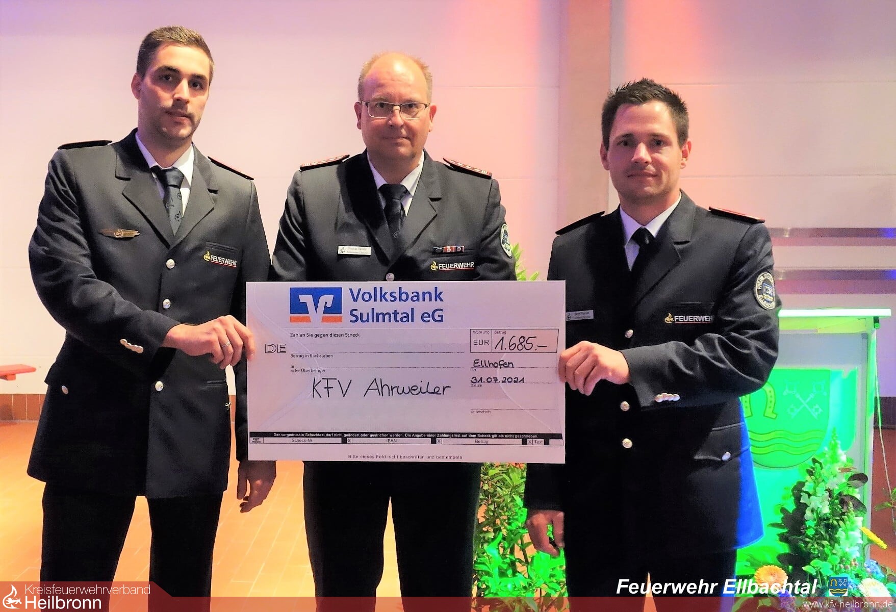 1685.- € ist der Spendenbetrag, nach der Hauptversammlung von der Feuerwehr Ellbachtal. Auf Initiative von Kommandant Oeckler unterstützt die Feuerwehr Ellbachtal den Spendenaufruf vom KFV Ahrweiler. Mit anfänglich 500.- € aus der Kameradschaftskasse konnte der Betrag durch die Anwesenden der Hauptversammlung auf die Summe von 1685.- € erhöht werden. Das Geld kommt betroffenen Feuerwehrkameraden im Ahrkreis zu Gute. Jede Spende ist eine Hilfe!