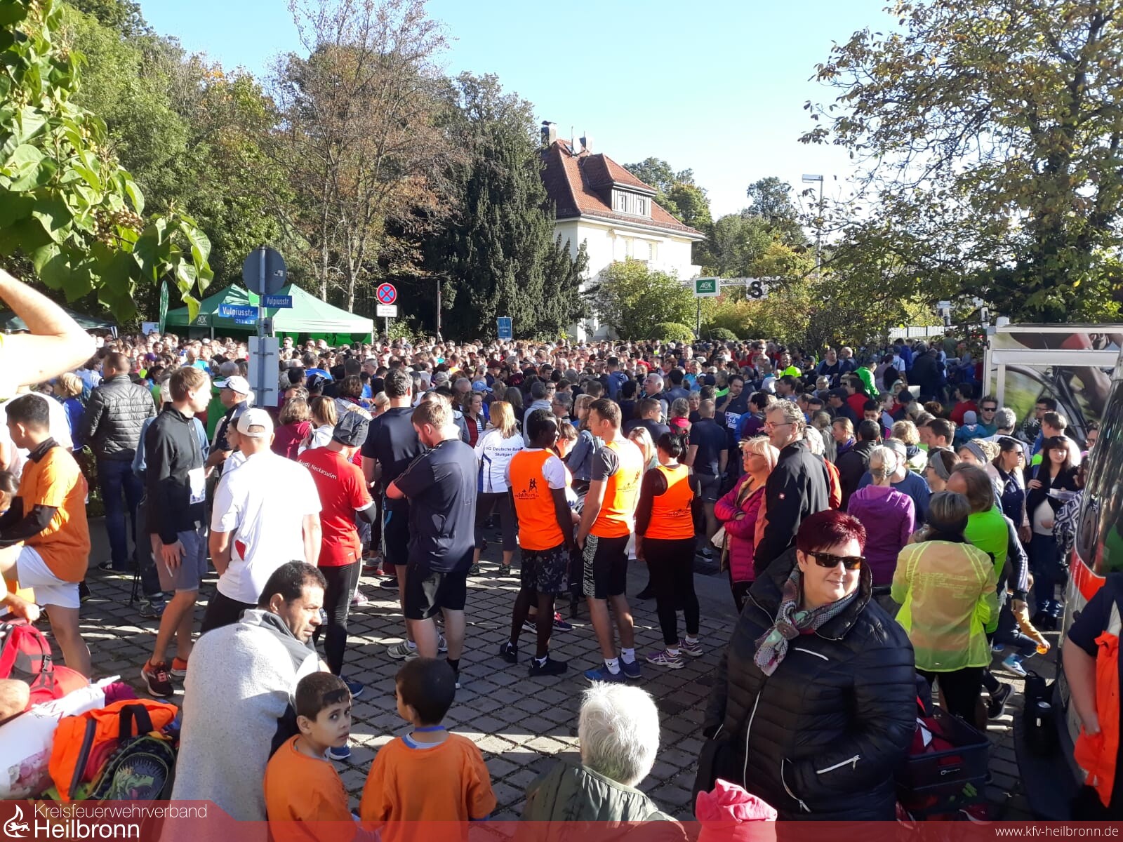 Die Laufgruppe der Feuerwehr: Lisa Stein, Nils Buchholz, Thomas Bujara, Rouven Weik, Tom Dettelbach, Michael Riedel, Julia Kohl, Emanuel Michalik, Steffen Hildenbrand, Tobias Sobiella mit Tochter Emilia, Thomas Oeckler mit Sohn Laurin, Sören Kollotzek, Dominik Hannemann, Joachim Dehner und Christian Kartmann