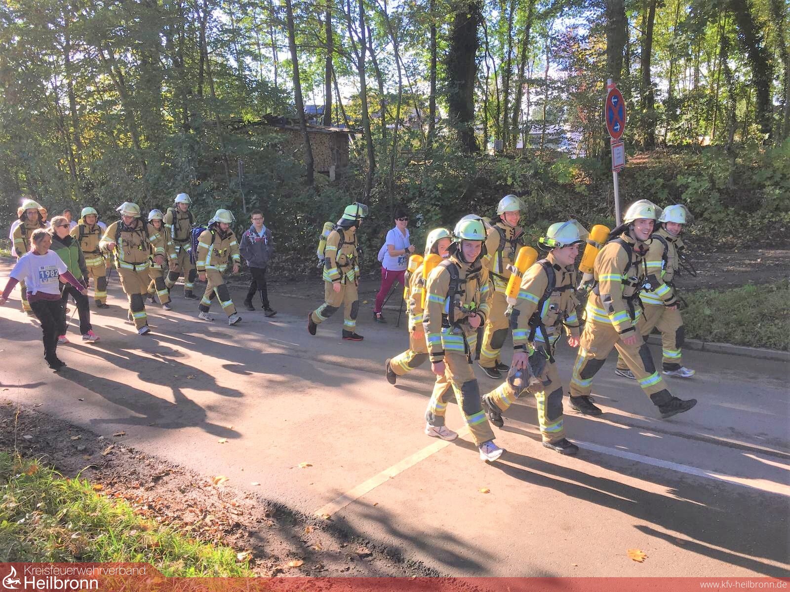 Als wir von dieser Veranstaltung erfuhren, war es sofort klar, dass wir daran teilnehmen. Der eigentlich geplante Besuch auf der Fachmesse Florian in Dresden wurde storniert. Eine Lauftruppe aus 15 Kameradinnen und Kameraden startete am Samstag in der Walkinggruppe. Wir sind als Team in Einsatzkleidung und mit einem Atemschutzgerät gestartet und die Runde gelaufen.