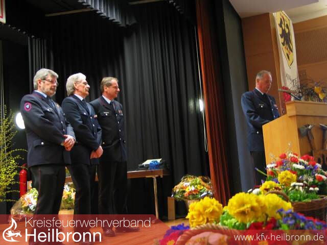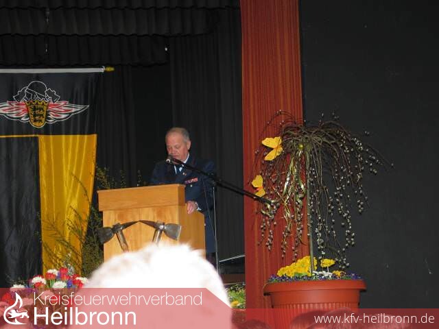 Im Vordergrund der Hauptversammlung stand der Stabwechsel und die Verabschiedung verdienter Mitglieder vor prominentem Publikum. Grußworte sprach der Hausherr Bürgermeister Claus Brechter aus Bad Wimpfen, Landrat Detlef Piepenburg und der Präsident des Landesfeuerwehrverbandes Baden-Württemberg, Dr. Frank Knödler, Kommandant der Feuerwehr Stuttgart.