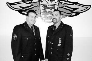 Bild: Thomas Scheid (rechts) übergibt die Leitung der Jugendfeuerwehr Pfaffenhofen an seinen Nachfolger Timo Kirschner. (Foto: Werner Stuber)