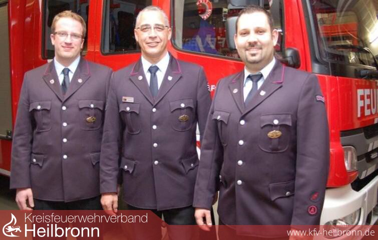 Bild: Die Floriansjünger haben eine neue Führung: der neue Kommandant Rouven Leibbrand (v.l.), Vorgänger André Göbl und Stellvertreter Jochen Reske. (Foto: Stefanie Pfäffle)