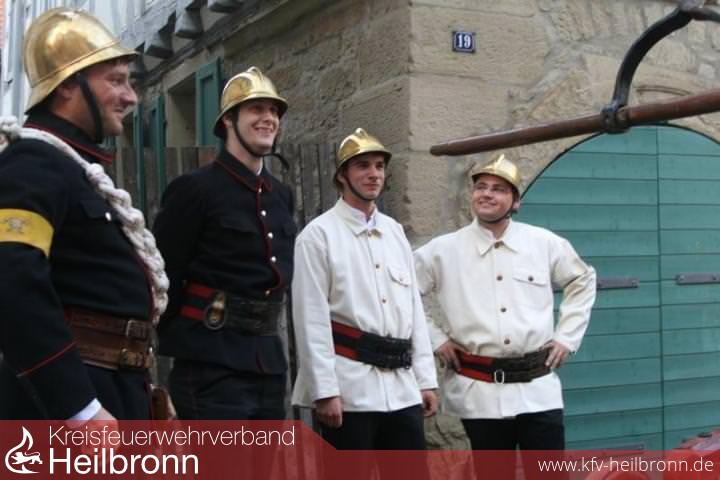 Alexander Wagner mimte den alten Feuerwehr-Hasen, Marco Scaglione den Frischling, der sich neugierig für die Belange der Floriansjünger interessiert. Auf dem Eppinger Marktplatz musste ihm die Eppingerin Hanna Jungbauer erst einmal helfen, seine goldenen Knöpfe richtig zu schließen - eine Führung in Dialogform zwischen Wagner und Scaglione, an einzelnen Stationen, unterstützt durch andere Aktive der historischen Abteilung.