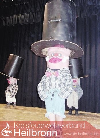Unter dem Motto „Die Feuerwehr sucht den Superstar“ eröffnete Jürgen Zimmermann als Moderator das Programm. Die prominente Jury mit Thomas Stein, Shona Fraser, Thomas Bug und Dieter Bohlen, gespielt von Reinhold Hecker, Beate und Reinhold Sack sowie Hartmut Kächele, nahm die Beurteilung der Beiträge mit Wortwitz und Selbstironie vor. Den Anfang machten die „Flash-Over-Männer“ mit einem Liedvortrag über zehn Eppinger Feuerwehrmänner, denen vor, während oder nach einem Einsatz so manches Missgeschick passierte. Von den anfänglich zehn Floriansjüngern blieb zum Schluss noch einer übrig.