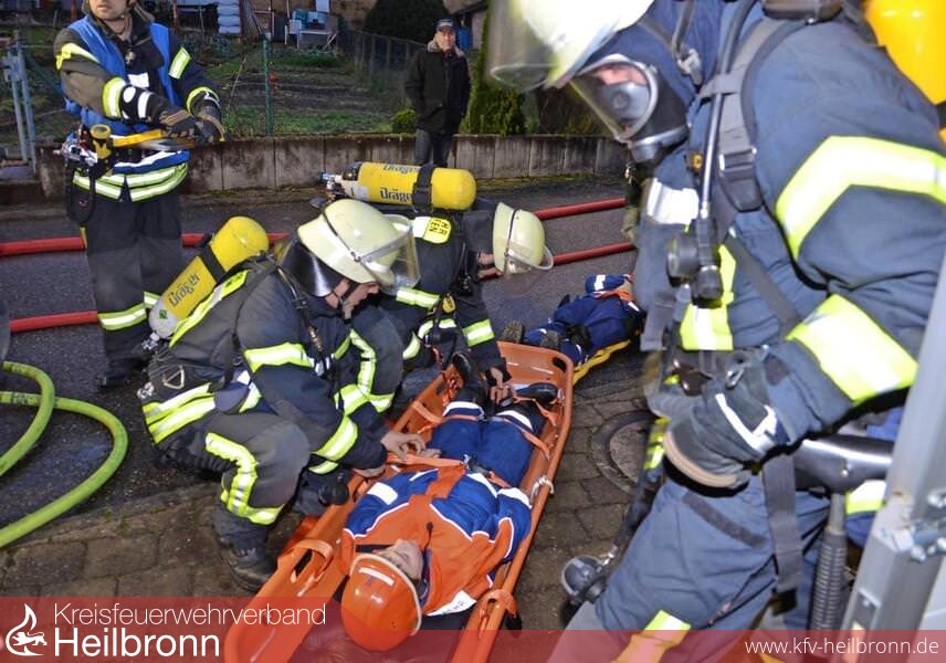 Die Suche nach vermissten Personen war in den weit verzweigten und völlig abgedunkelten Räumen und Kellern nicht einfach. Das stellten die mit Atemschutzgeräten ausgerüsteten Rettungstrupps dann auch recht schnell fest. Nur mit Hilfe der Wärmebildkamera, die seit der Indienststellung des neuen Löschgruppenfahrzeugs LF 10 an Bord ist, konnten die vier Verletzten schließlich gefunden und gerettet werden.