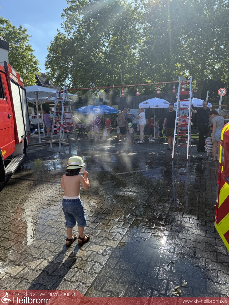 Überhaupt bilde die Feuerwehr Heilbronn eine ideale Symbiose zwischen Beruf und Ehrenamt, wie Müller feststellte. „Ohne Berufsfeuerwehr wäre die Arbeit in der Kernstadt nicht machbar, aber ohne die Freiwilligen auch nicht haltbar. Nur im Hauptamt geht es nicht“, erklärte er. „Mir ist wichtig, dass die Leute sehen und wissen, dass die FW Heilbronn nicht nur die Berufsfeuerwehr ist, sondern, dass alle Abteilungen dazugehören“, sagte Franz, der auch die Nachwuchsgewinnung ansprach. „Mit dem Tag der offenen Tür wollen wir auch junge Leute für unsere Arbeit begeistern“, erklärte er. Was die Jugendfeuerwehr betrifft, die mit ihren Wasserspielen die jüngsten Besucher erfreute, sei man in den Abteilungen mit insgesamt über 100 Jugendlichen gut aufgestellt.