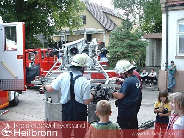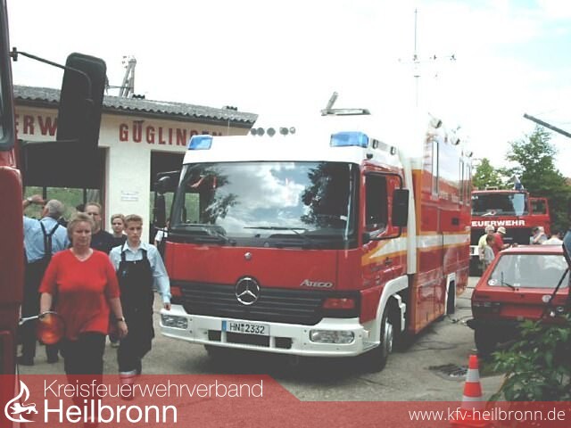 Unter der Regie der Jugendfeuerwehr folgte man den Aufruf des Innenministeriums am 8.6.2002 den "Tag der Feuerwehr" mit örtlichen Veranstaltungen zu feiern. Ab 11 Uhr öffnete man die Tore für die Bevölkerung. Die Jugendfeuerwehr sorgte für die Bewirtschaftung. Besonders freuten sich die Veranstalter, als der Maschinistenausbildungskurs von Brackenheim sich kurzerhand entschloss seine Mittagspause in Güglingen zu verbringen. Mit Rundfahrten durch Güglingen und Löschen des Brandhauses bot man den Kids ein abwechslungsreiches Programm. So ab 15.00 Uhr ging es dann so richtig rund, da so mancher Bewohner und Interessierter aus den Umkreisen erst spät den Weg zum Magazin fand. Mit den ELW 2 aus Neckarsulm und der Drehleiter aus Brackenheim rundete man das Sortiment an Fahrzeuge der Fahrzeugschau ab. Mit jeweils kleinen Demonstrationen konnten sich Bürger über die Fahrzeuge der Wehren informieren. Ingesamt gesehen war die Veranstaltung auch für Jugendkasse wieder ein Erfolg. Festzuhalten gilt noch, dass leider ca. 2 Stunden nachdem man mit den Aufräumarbeiten fertig war, die Wehr zu einem Großbrand nach Pfaffenhofen als Überlandhilfe ausrücken müsste.