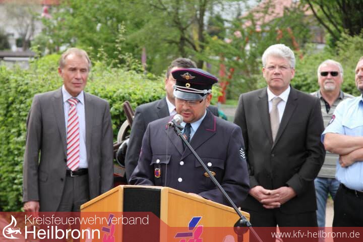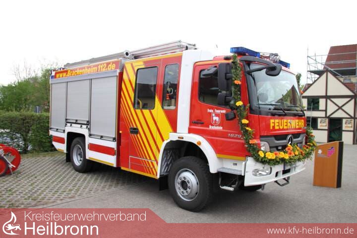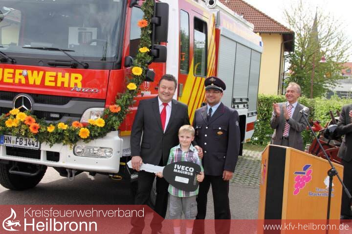 Das Highlight am diesjährigen Tag der offenen Tür war aber sicherlich die offizielle Übergabe des neuen Hilfeleistungslöschgruppenfahrzeugs (kurz: HLF) 20/16. Zwar wurde das Fahrzeug bereits vor mehreren Wochen von der Feuerwehr beim Hersteller abgeholt und seither die Mannschaft in unzähligen Übungsabenden eingewiesen, doch zur offiziellen Übergabe am Tag der offenen Tür waren neben Bürgermeister Kieser und Kommandant Hügle auch jeweils ein Vertreter der Daimler AG und dem Aufbauhersteller Magirus Brandschutztechnik GmbH sowie der stellv. Kreisbrandmeister Schiefer aus Lauffen a.N. anwesend. Nach jeweils kurzen Redebeiträgen stand die symbolische Schlüsselübergabe des Fahrzeugs an: Der Schlüssel wurde dieses Mal aber nicht wie üblich an die Feuerwehr bzw. stellvertretend an den Kommandanten übergeben, sondern als Zeichen dessen, dass es sich bei dem Fahrzeug nicht um ein Geschenk an die Feuerwehr, sondern um ein Rettungsmittel für alle Bürgerinnen und Bürger unserer Stadt handelt, an einen jungen Menschen aus Brackenheim. Vielleicht wird er mit diesem Fahrzeug in einigen Jahren selbst als Mitglied unserer Feuerwehr anderen Menschen in Notlagen helfen und/oder in 30 Jahren für den Ersatz dieses Fahrzeugs sorgen, so Kommandant Hügle in seinen Dankesworten. In jedem Fall wird das Fahrzeug zukünftig wesentlich zur Leistungsfähigkeit der Freiwilligen Feuerwehr Brackenheim beitragen.