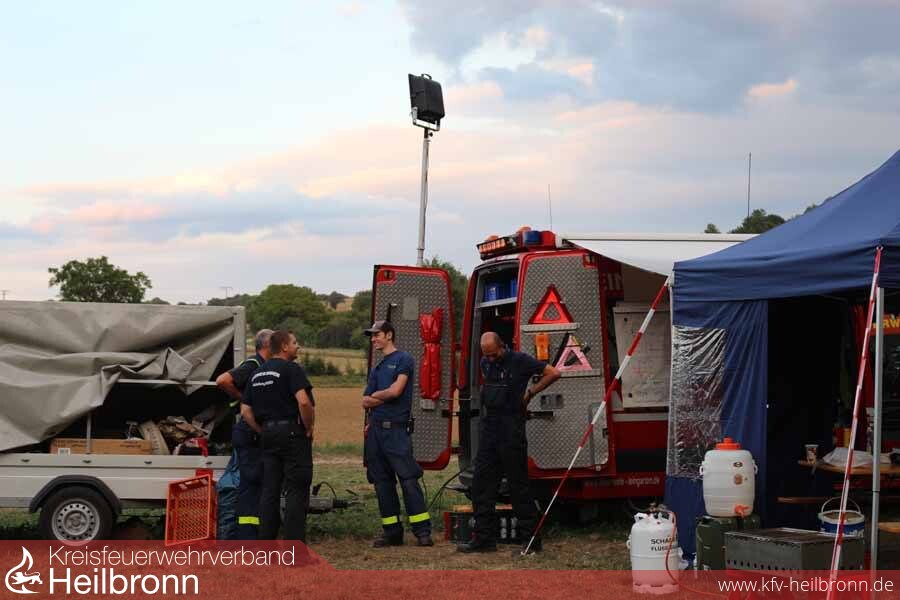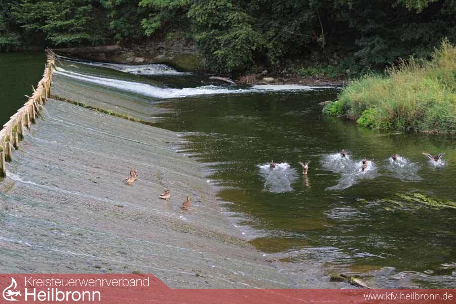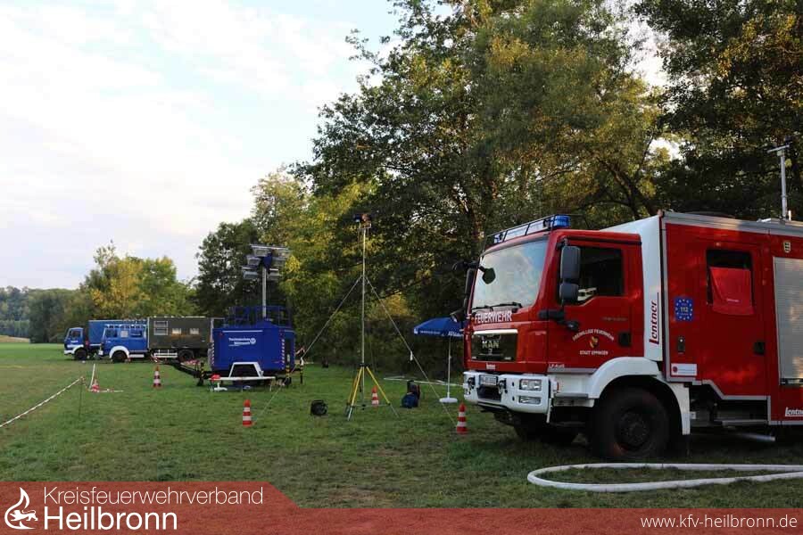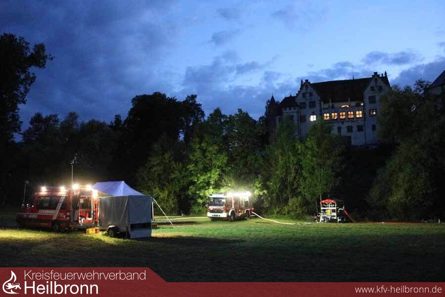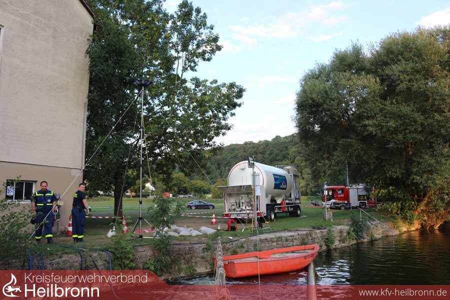 Am Abend des fünften Einsatztages im Landkreis Heilbronn hat das Ende der Fahne beinahe die Kreisgrenze an der Jagsthausener Radbrücke erreicht. Die ersten Abschnitte ziehen voraussichtlich am Freitag Jagstabwärts in Richtung Neudenau.