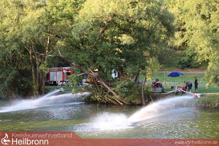 Momentan sind rund 200 Einsatzkräfte in zwölf Abschnitten im Einsatz mit dem Ziel, die Ammoniumbelastung der Jagst noch weiter zu reduzieren. Darunter Einsatzkräfte aus dem Stadt- und Landkreis Heilbronn sowie aus dem gesamten Land Baden-Württemberg. Mit Pumpen werden pro Minute 240 000 Liter Jagstwasser umgewälzt und dabei mit Sauerstoff angereichert. Außerdem wird aus Tankwagen Flüssigsauerstoff zugegeben.