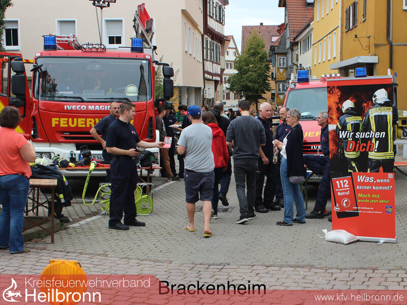 So verwandelte man in Lauffen den Kiesplatz in einen großen Erlebnispark rund um das Thema Feuerwehr. In Brackenheim trafen die Besucher des Straßentheaterfestivals an jedem Zugang zur Innenstadt auf Info- und Ausprobierstände der Feuerwehr. Auch hatte man einen ungeplanten Programmpunkt zu bieten: das Abrücken des Löschzuges direkt aus der Innenstadt zu zwei fast zeitgleichen Brandmeldealarmen. In Güglingen präsentierten sich alle Feuerwehren des „oberen Zabergäus“ gemeinsam auf dem WG-Fest. Die Feuerwehr Heilbronn präsentierte sich unter anderem am Rande des Weindorfs in der Fußgängerzone.