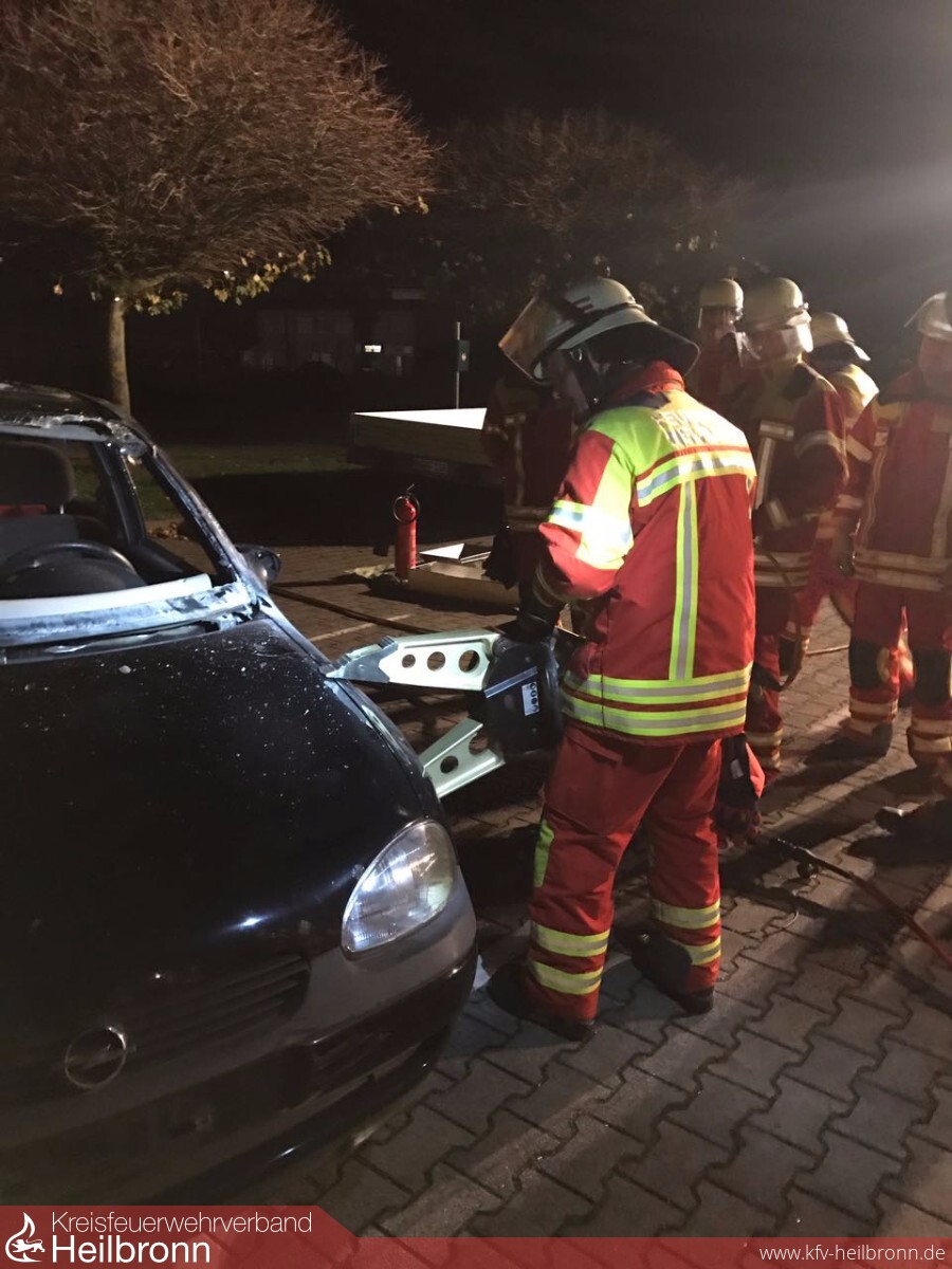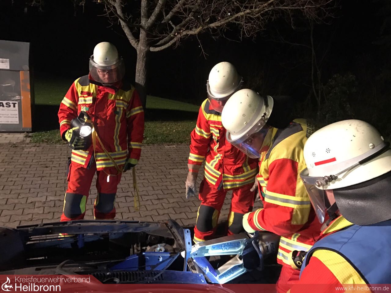 Am Montag, den 30. Oktober fand eine interessante Übung der Einsatzabteilung Herbolzheim statt. Gemeinsam mit Kameraden der Löschgruppe Kreßbach wurde zum Thema technische Hilfeleistung – PKW – ein umfangreiches Übungsprogramm absolviert. Mit dem Löschgruppenfahrzeug der EA Herbolzheim und dem Tanklöschfahrzeug der EA Neudenau ging es auf den Sportplatz Herbolzheim. Dort waren 2 Unfall-PKW vorbereitet.