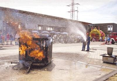 Bild: Die Jugendfeuerwehr lieferte am Gerätehaus in der Lindenstraße vor großem Publikum Beweise ihres Könnens ab. Foto: Roland Baumann