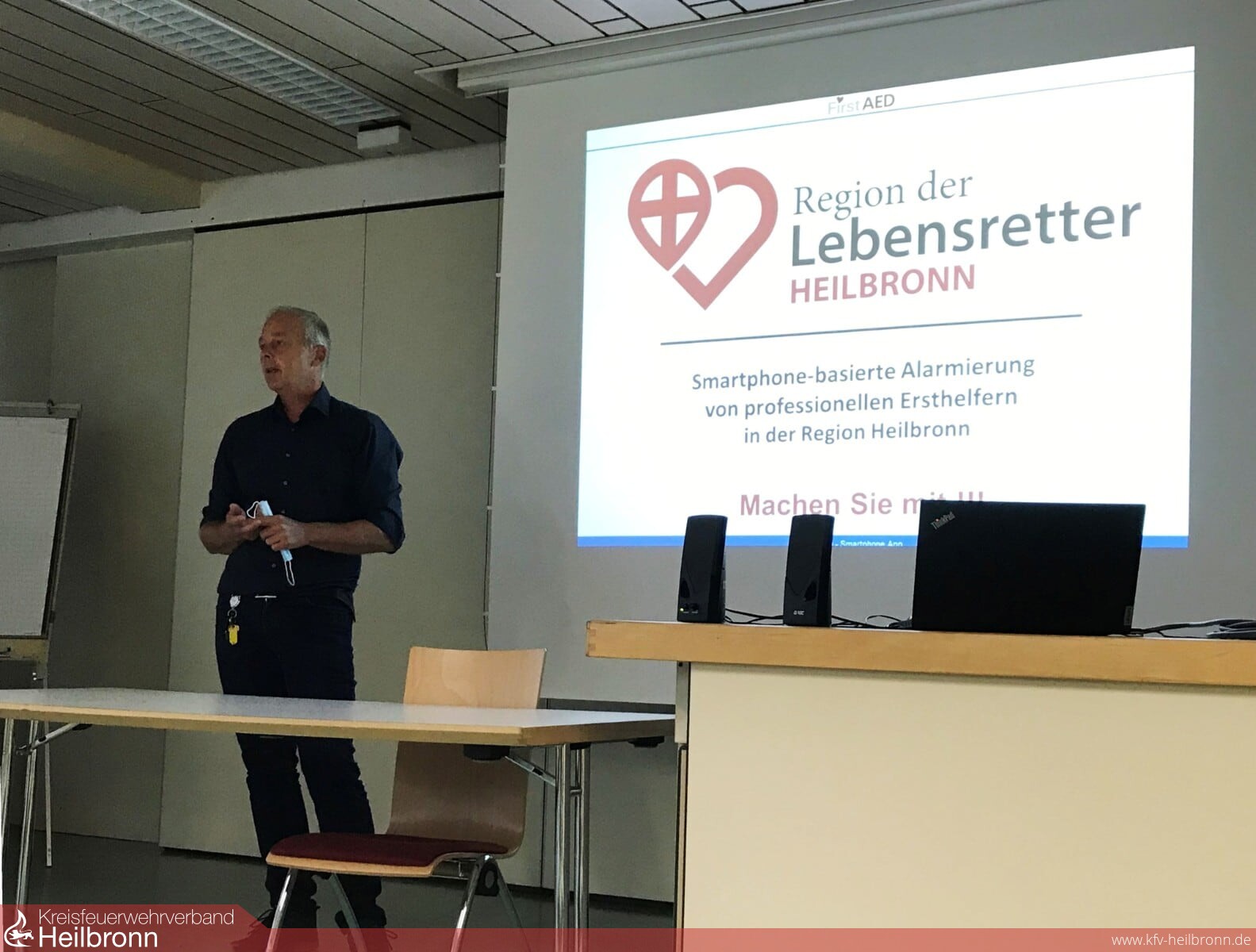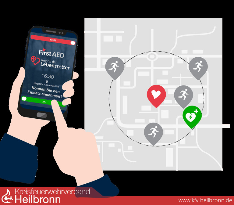 Der Verein Region der Lebensretter e.V. und das DRK Heilbronn haben daher ein App-basiertes System für die Region Heilbronn etabliert, mit dem die Integrierte Leitstelle registrierte Ersthelfer über Smartphone in der unmittelbaren Nähe des Notfalls bestimmen und alarmieren können. Auch rettungsdienstlich ausgebildete Feuerwehrangehörige stellen eine ideale Zielgruppe als Helfer dar. Deshalb informierte Joachim Bähr, Leiter der Integrierten Leitstelle die Feuerwehr Heilbronn über diese lebensrettende App. Rund 200 Helfer aus der Region sind bereits registriert und können im Bedarfsfall alarmiert werden. Mindestvoraussetzung für eine Registrierung ist die Ausbildung zum Sanitätshelfer. Mehr Infos gibt es auch unter: https://regionderlebensretter.de/lebensretter-app/ oder über heilbronnregionderlebensretter.de