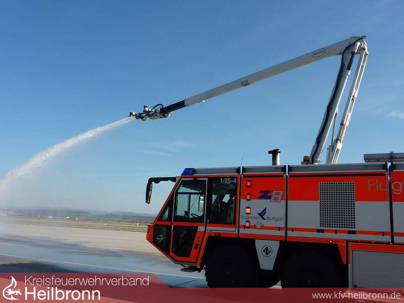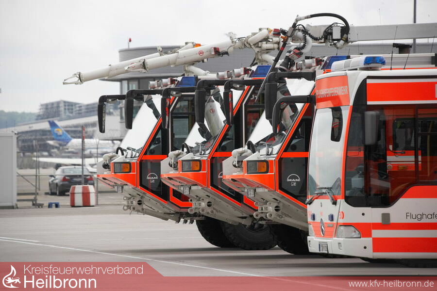 Kein Zutritt ohne strenge Personenkontrolle. Alle Teilnehmer mussten durch die Schleusen, im Terminal 4. Sie duften Gürtel und Jacken abgeben, wurden gescannt und für „vertrauenswürdig“ eingestuft. Mit zwei Bussen ging es über das Flughafenvorfeld zur Feuerwehr. Nach einem Imbiss richtete der Leiter der Leiter der Flughafenfeuerwehr Stuttgart Andreas Rudlof ein Grußwort an die Teilnehmer. Rudlof für viele Feuerwehrler ein alter Bekannter – er stammt aus dem Heilbronner Land in Siegelsbach und ist seit sechs Jahren Chef der Flughafenfeuerwehr und des Rettungsdienstes vor Ort.