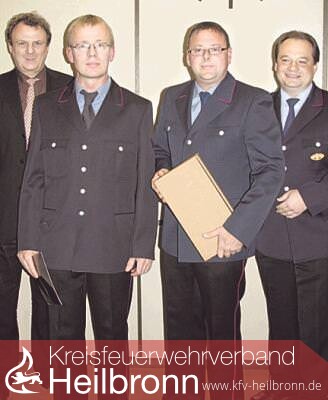 Bild: Von links: Stefan Thoma, Tom Henschel, Markus Grandi, Gesamtkommandant Lajosch Miklosch. (Foto: Döttling)