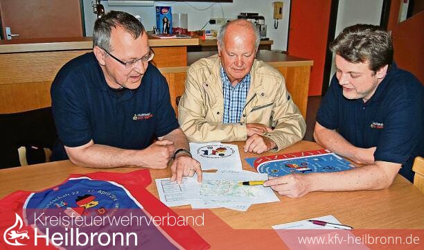 Bild: Letzte Besprechungen vor der langen Tour: (von links) Kommandant Martin Ramsperger, Reinhold Korb und Chefplaner Miro Vrana. Foto: Rudolf Landauer