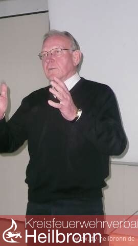 Der Obmann der Alterskameraden im Kreisfeuerwehrverband Heilbronn, Reinhold Korb aus Bad Wimpfen begrüßte als Leiter der Veranstaltung die zahlreich erschienenen Obmänner der Altersabteilungen in den Gemeindefeuerwehren, den Obmann der Alterskameraden im Landesfeuerwehrverband Baden-Württemberg Helmut Trautwein aus Steinheim/Murr und Landesbranddirektor a.D. Ulrich Kortt aus Weinsberg