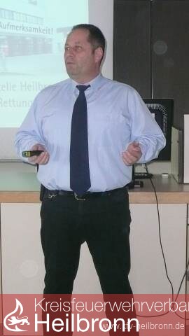 Im Rahmenprogramm stellte der stellvertretende Vorsitzende des Kreisfeuerwehrverbandes, der Kommandant der Feuerwehr Heilbronn Eberhard Jochim, die Feuerwehr Heilbronn und die neue integrierte Leitstelle vor.