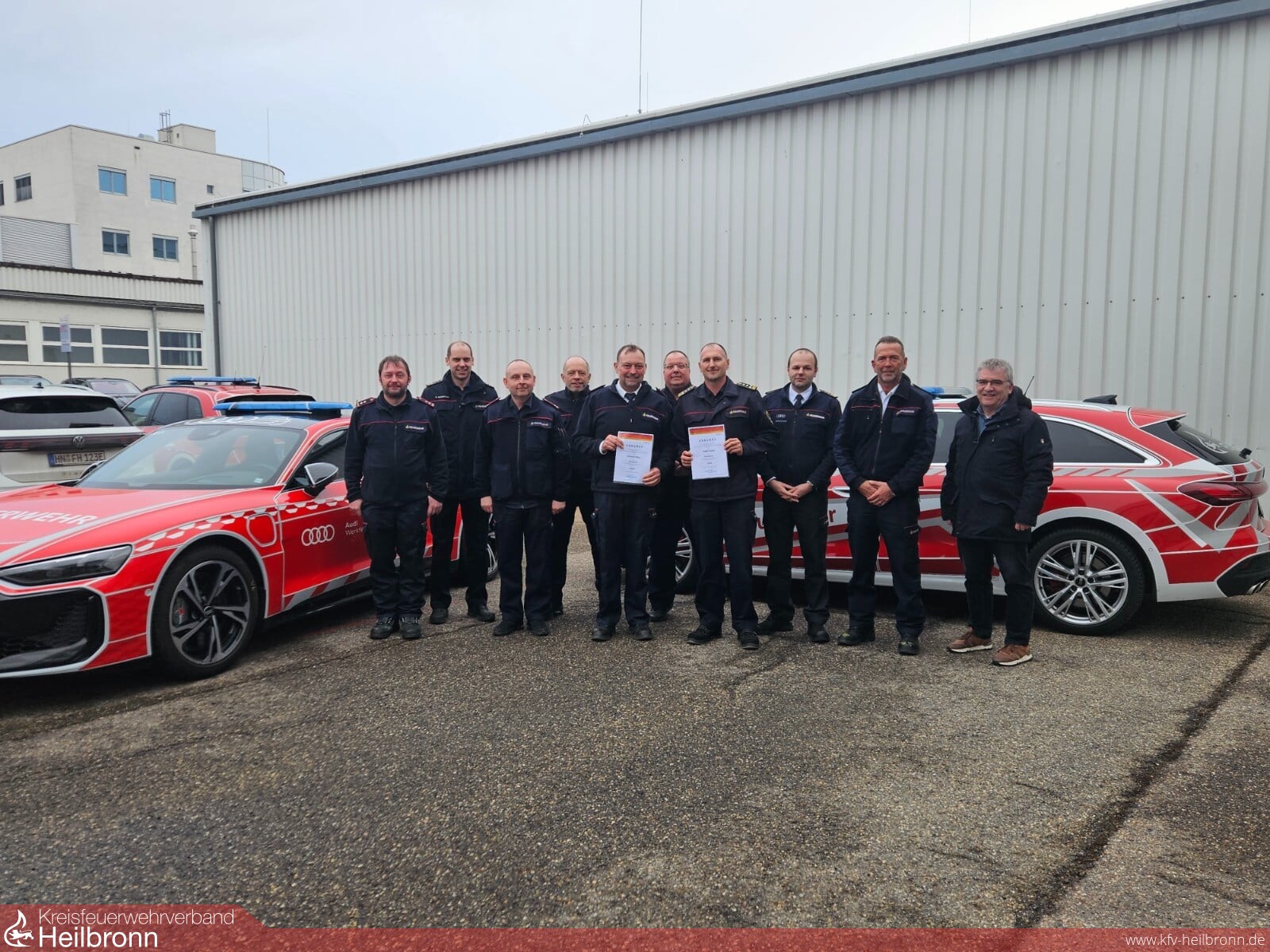 Am 10. Februar 2026 fand das Treffen der Werkfeuerwehren des Landkreises Heilbronn bei der Werkfeuerwehr Audi statt. Da beide Kollegen am Herbstseminar der Arbeitsgemeinschaft der Werkfeuerwehren nicht teilnehmen konnten, wurden sie im Rahmen des Treffens nachträglich für ihr langjähriges Engagement ausgezeichnet.