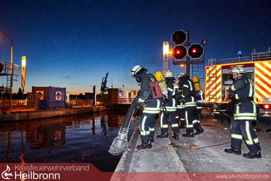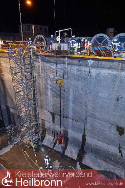Das Szenario, das von den Gruppenführern Gerhard Wagner, Jürgen Stöcker und Bernd Modjesch von der Feuerwehr in Zusammenarbeit mit der Bauherrschaft von dem Amt für Neckarausbau Heidelberg (ANH) und der Schleith Baugesellschaft entwickelt wurde, stellte die Einsatzkräfte vor eine komplexe Aufgabe. Eine Gasexplosion in der Schleusenkammer ohne Sicht mit drei verletzen Personen auch im Wasser war die Vorgabe. Jeden ersten Montag im Monat führt die Feuerwehr solche Übungen durch. Einen Einsatz an einer solchen Großbaustelle ist aber etwas Besonderes. „Es ist wichtig für uns solche Szenarien zu üben um für den Ernstfall gewappnet zu sein.“ sagt Wagner. „Bei solchen Übungen darf auch mal ein kleiner Fehler passieren, so können wir Erkenntnisse für den Ernstfall erlangen und daraus lernen. Nach der Übung wird besprochen was gut gelaufen ist und wo Verbesserungspotenzial besteht.“