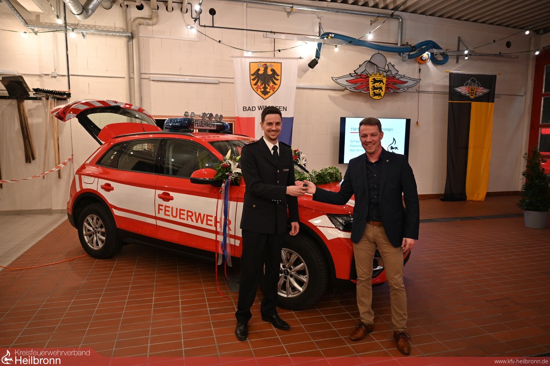 Am Samstag, den 24.02.2024 fand das traditionelle Schlachtfest der Freiwilligen Feuerwehr Bad Wimpfen statt. Dieses Jahr gab es gleich zwei Highlights. Zum einen, die Einweihung des Anbaus der Fahrzeughalle und zum anderen die offizielle Übergabe des neuen Kommandowagens. Nachdem der Feuerwehrchor unterstützt durch die Strahlrohrsänger aus Freiburg mit dem Feuerwehrlied den Abend musikalisch eröffnet hatten, trat Bürgermeister Andreas Zaffran ans Rednerpult. Der Bürgermeister begrüßte alle und sprach in seiner Rede über den Anbau, den Feuerwehrbedarfsplan und sagte die Unterstützung bei den geplanten Umbaumaßnahmen zu. Jonas Teschler der Kommandant der Feuerwehr berichtete über das schon im Jahre 2017 Überlegungen für einen Anbau angestrebt wurden, bevor 2022 mit den Bauarbeiten begonnen werden konnte. So waren der Ölabscheider, der Hauptkanal und die Elektro-Installation in der Fahrzeughalle auf den heutigen Stand der Technik gebracht worden. Des Weiteren informierte Teschler die Anwesenden über die Nutzung dieser neugewonnenen Fläche. Bevor mit der Durchtrennung des Flatterbandes der Anbau offiziell seiner Nutzung übergeben wurde, Dankte Teschler der Stadt sowie der Verwaltung für die Unterstützung. 204 PS, Automatik Getriebe, Allrad waren nur einige Schlagworte die Jonas Teschler bei seiner Rede über den neuen Kommandowagen den Anwesenden mitteilte und Bürgermeister Andreas Zaffran wünschte bei der offiziellen Schlüsselübergabe alles Gute für alle Einsatzfahrten. Nachdem der Feuerwehrchor mit Unterstützung der Strahlrohrsänger aus Freiburg den gemütlichen Teil des Schlachtfestes eröffnet hatten hielt der Ehrenkommandant und Leiter des Feuerwehrchors Reinhold Korb eine kurze Ansprache. Die Freiburger Strahlrohrsänger bedankten sich mit einem Geschenk und einem Dank bei Reinhold Korb für die langjährige Freundschaft. Vielen herzlichen Dank sagte Kommandant Jonas Teschler im Namen der ganzen Feuerwehr zu Cornelia und Ludwig Dautel die mittlerweile schon 30 Jahre lang für das leibliche Wohl der Gäste des traditionellen Schlachtfestes der Freiwilligen Feuerwehr Bad Wimpfen sorgen.