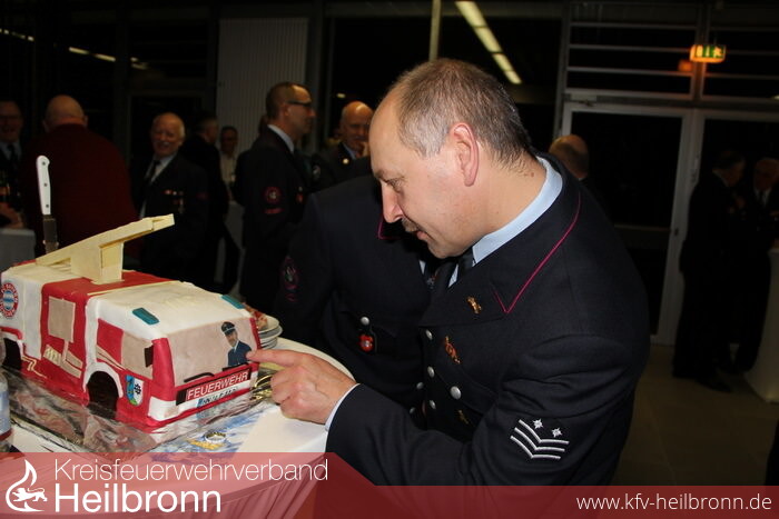 Die Stadt Möckmühl und die Feuerwehr hatten zum Geburtstagsempfang eingeladen. Von langer Hand vorbereitet, wurden die Feuerwehrangehörigen aus Möckmühl, die Kommandanten des Bezirks IV, Kreisbrandmeister Uwe Vogel und sein Stellvertreter Heiner Schiefer, Reinhold Gall als Vorsitzender des Kreisfeuerwehrverbandes, die Mitglieder des Möckmühler Gemeinderats und die Familienangehörigen von Uwe Thoma in die Jagsttalhalle eingeladen. Wer nicht gerade urlaubsbedingt abwesend oder beruflich verhindert war, nahm die Einladung an, so dass eine Schar von einhundert Gratulanten das Geburtstagskind erwartete.