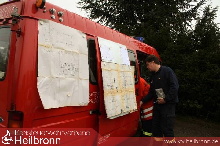 In der Zwischenzeit wurden durch den Leiter des Obstgutes alle vorliegenden Pläne (Baupläne- und Wasserversorgung) der Besatzung des ELW 1 ausgehändigt, so dass die Technische Einsatzleitung (TEL) alle wichtigen Informationen vor Ort hatte.