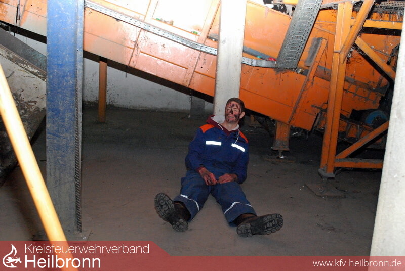 Ausgangslage war ein Brand im Bereich der manuellen Müllsortierung. 5 Mitarbeiter wurden dabei schwer verletzt und mussten aus dem Gefahrenbereich gerettet werden.