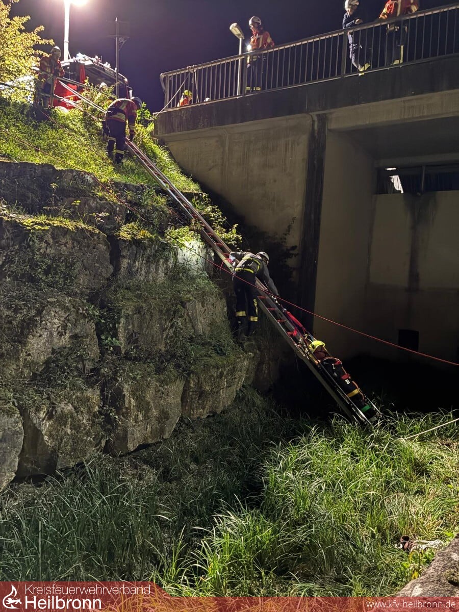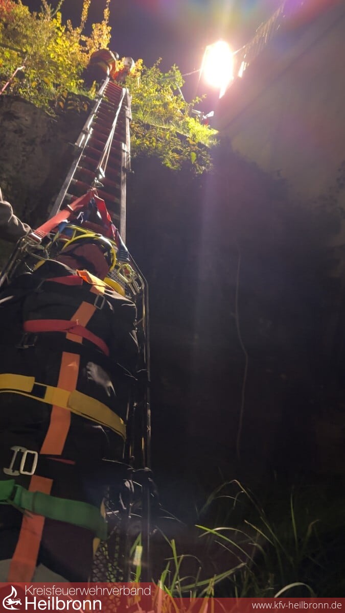 Am gestrigen Abend übte die sich im Aufbau befindliche ERHT-Gruppe (Einfache Rettung aus Höhen und Tiefen) der Freiwilligen Feuerwehr Bad Rappenau am Rückhaltebecken in Treschklingen.