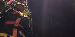 Der Übungsdummy wurde achsengerecht auf ein Spineboard gelagert, anschließend in einer Schleifkorbtrage fixiert und schließlich mithilfe des Flaschenzugs über die Steckleiterteile zurück nach oben transportiert.