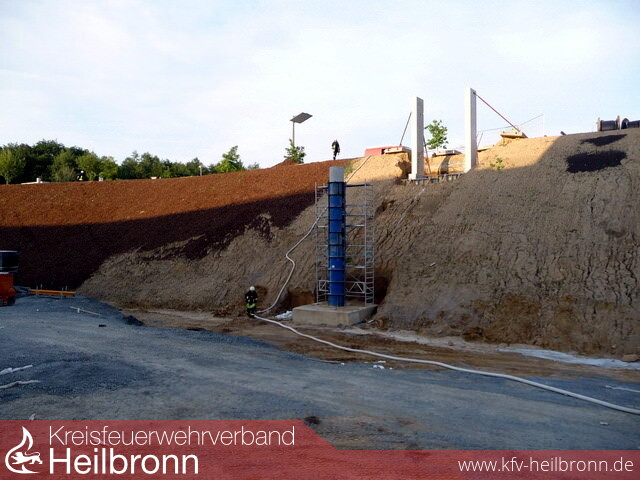 Der 2. Zug hatte gleichzeitig die Aufgabe, den Brand eines dort eingesetzten Arbeitskrans abzulöschen. Da der Kran mit 900 Liter Diesel betankt war und durch einen technischen Defekt ca. 350 Liter Hydrauliköl ausliefen, konnte das Feuer nur durch das Verlegen eines Schaumteppichs abgelöscht werden.