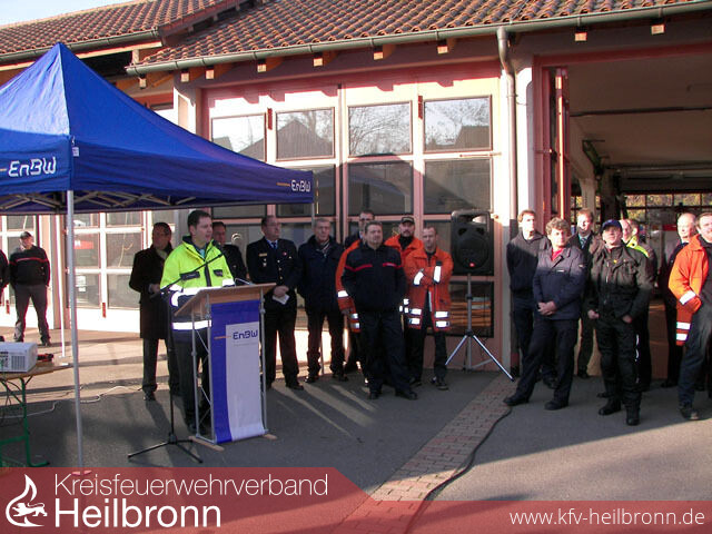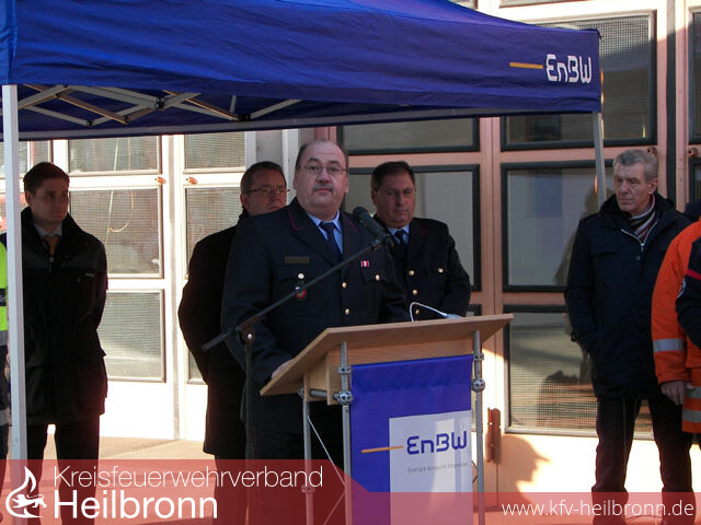 Kreisbrandmeister Uwe Vogel bedankte sich bei der EnBW für die Bereitstellung der Anlage, durch die die Einsatzkräfte in den Genuss einer realitätsnahen Ausbildung kommen, wie sie bisher nicht möglich war. Vogel: Wir können die Feuerwehrleute jetzt auch wieder stärker für die Gefahren sensibilisieren, da die moderne Einsatzkleidung oft trügerische Sicherheit vermittelt. Die Anlage wird den Feuerwehren im Rahmen der Kreisausbildung über den Kreisbrandmeister zur Verfügung gestellt.