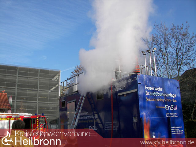 Auf dem Gelände der Feuerwehr Neckarsulm wurde heute durch die EnBW den Feuerwehren im Stadt- und Landkreis Heilbronn eine mobile Übungsanlage vorgestellt, die künftig für die heiße Ausbildung genutzt werden kann. Mit dieser Übungsanlage steht den Feuerwehren jetzt ein wichtiger Baustein für die Optimierung der Feuerwehrausbildung zur Verfügung. Der Container kommt nicht nur im Landkreis Heilbronn sondern in der gesamten Region Franken zum Einsatz.