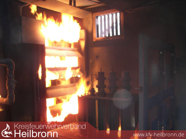 Durch Einsatzkräfte der Feuerwehr Neckarsulm wurden anschließend die möglichen Einsatzszenarien vorgestellt. Über eine Wärmebildkamera wurden die Bilder auf eine Großleinwand übertagen, so dass die anwesenden Vertretern der Feuerwehren des Stadt- und Landkreises Heilbronn den Einsatz mitverfolgen konnten. Anschließend bekamen auch sie die Gelegenheit, die Anlage unter reduzierter Beflammung zu inspizieren um sich einen Eindruck von den Bedingungen zu machen.