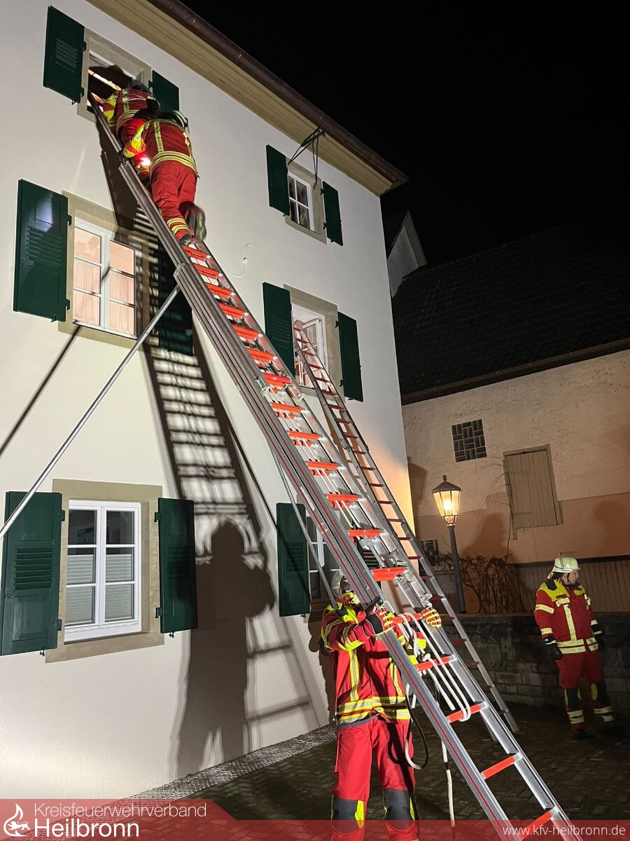 „Brand – Menschenleben in Gefahr. Aufstellung der Löschfahrzeuge am Marktplatz. Wasserentnahme Hydrant. Zwei Trupps zur Menschenrettung mit der Schiebleiter vor.“ Diese Befehle hallten in den ersten Minuten nach dem Übungsbeginn der Einsatzabteilung Neudenau über den Kirchplatz in Neudenau.