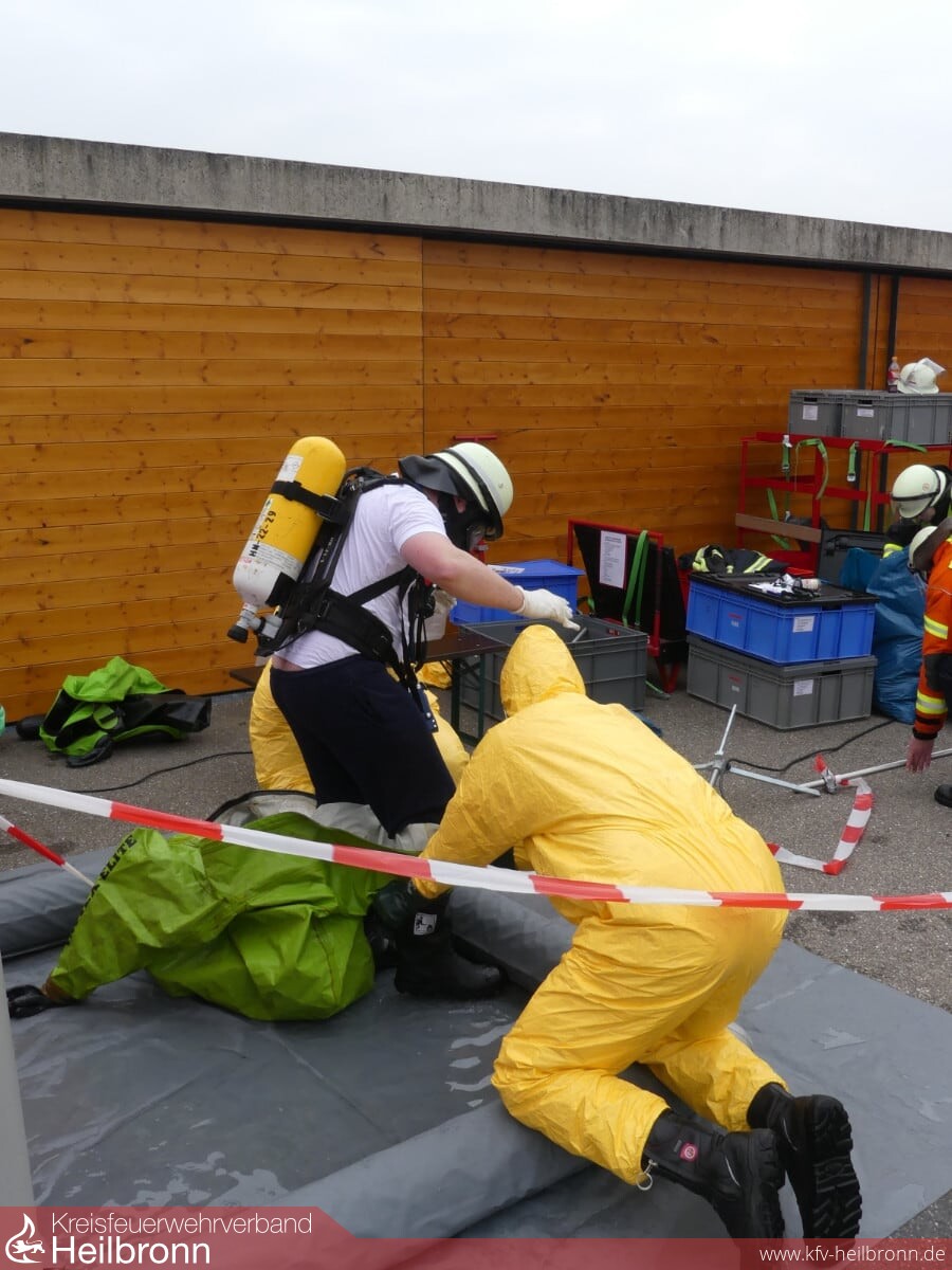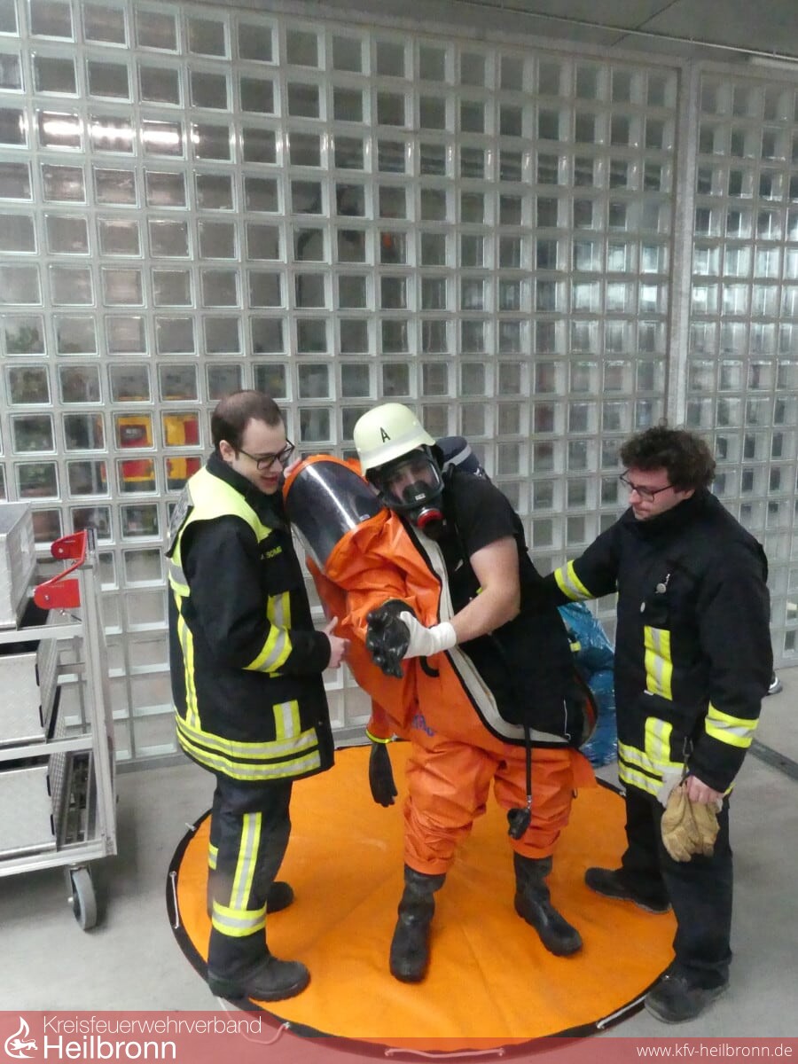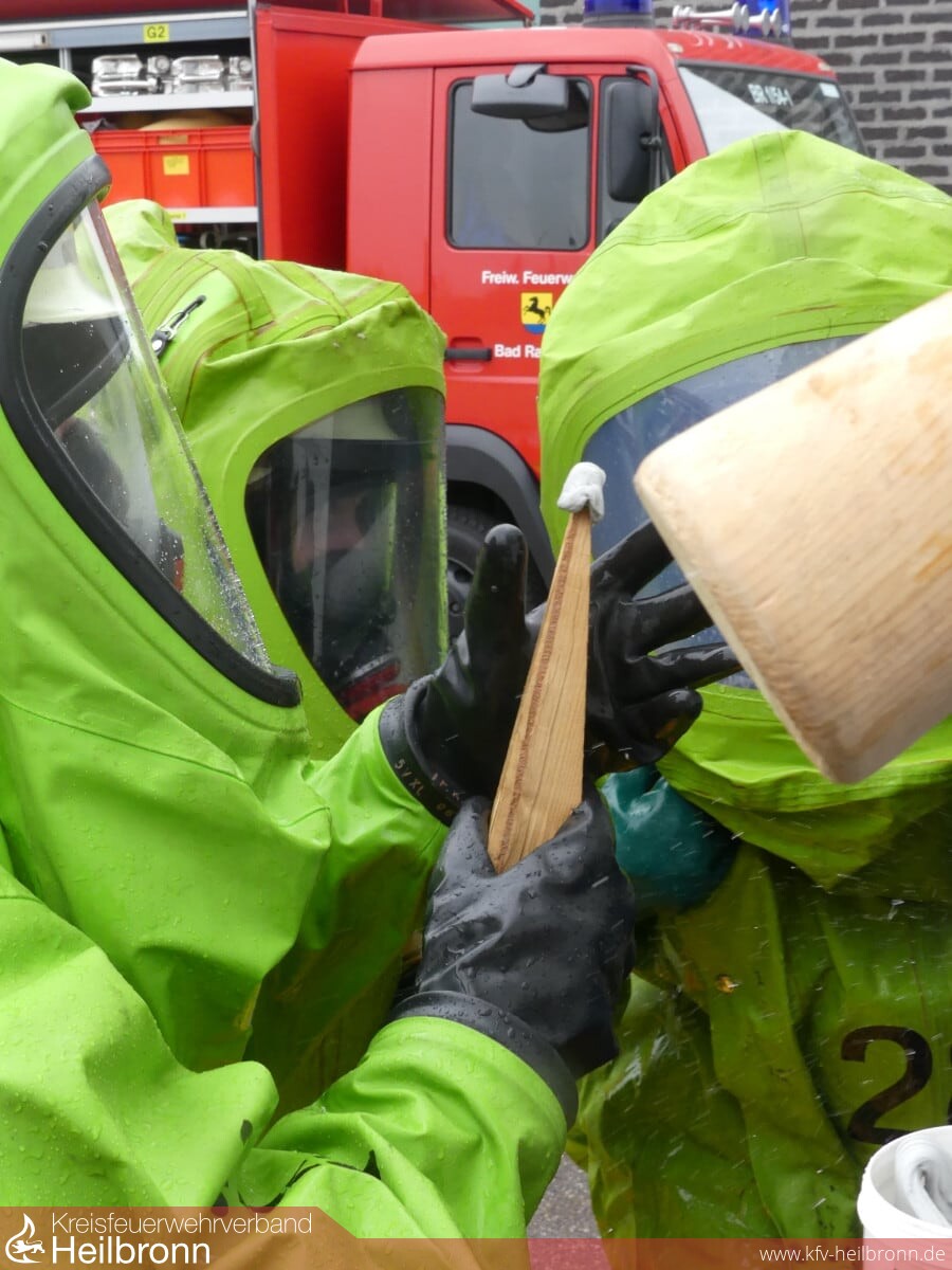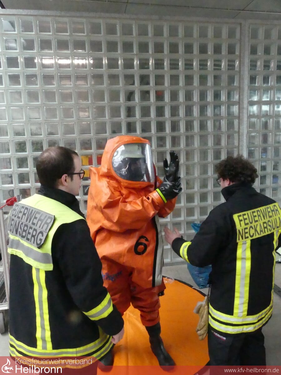Mit Unterstützung der Fachberatern Chemie des Landkreis Heilbronn, Sigrid Aßfalg und Dr. Stefan Sendelbach, haben sich die Gefahrstoffgruppen aus Bad Rappenau, Lauffen a.N., Neckarsulm und Weinsberg an verschiedenen Stationen weitergebildet.