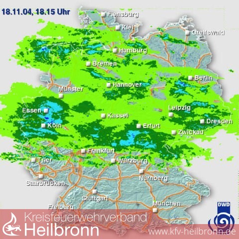 Mitte Deutschlands hinweg südostwärts. Damit besteht ab Mitternacht
