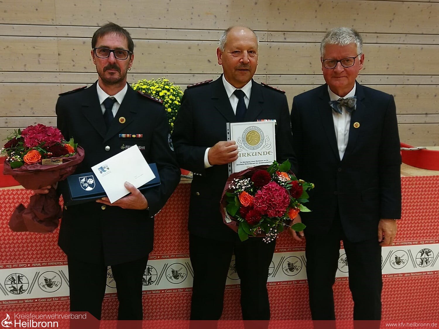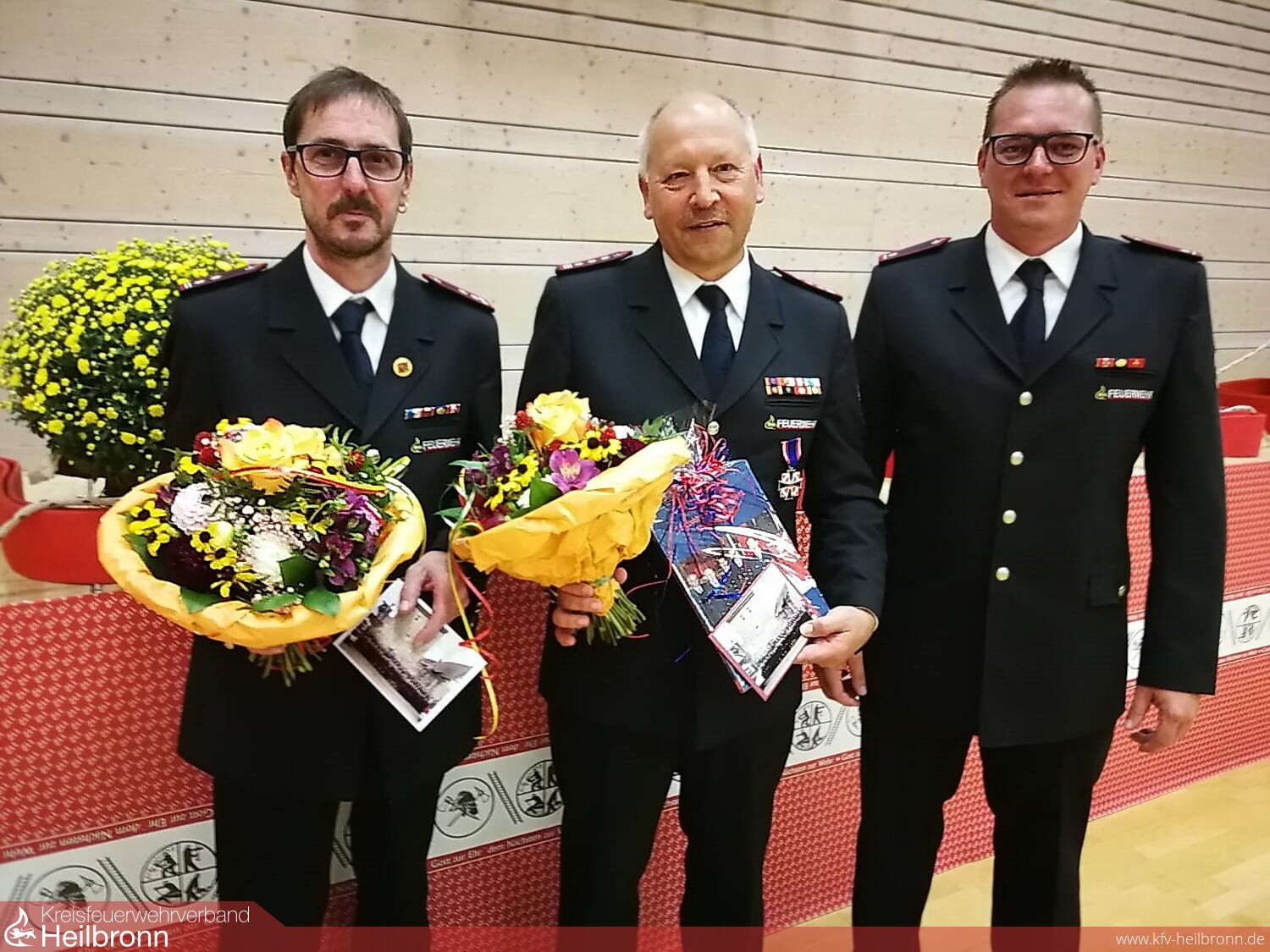 Als Dank und Anerkennung für seine Leistungen konnte er Uwe Thoma das Deutsche Feuerwehr-Ehrenkreuz in Silber verleihen. Bürgermeister Ulrich Stammer dankte dem scheidenden Kommandanten Uwe Thoma sowie seinem Stellvertreter Hans-Jörg Stammer für deren geleistete Arbeit. Als Dank für seine Tätigkeit überreichte er Hans-Jörg Stammer einen Gutschein für einen Aufenthalt im Feuerwehr-Hotel Titisee.