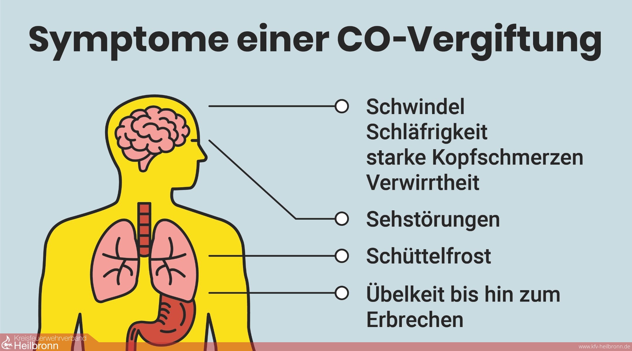 Kohlenmonoxid ist ein besonders gefährliches Atemgift, weil es unsichtbar, geschmacklos und geruchsneutral ist. Der Körper reagiert weder mit Husten noch mit akuter Atemnot. Darüber hinaus kann das toxische Gas unbemerkt durch Wände oder Fußböden dringen und so auch zum Gesundheitsrisiko in Räumen werden, in denen sich gar keine Gefahrenquelle befindet. Dr. Hella Körner-Göbel von der Bundesvereinigung der Arbeitsgemeinschaften der Notärzte Deutschlands e.V. (BAND) erläutert: „Kohlenmonoxid verdrängt den Sauerstoff im Blut und blockiert die Versorgung lebenswichtiger Organe, insbesondere des Gehirns und des zentralen Nervensystems. Während bei hohen CO-Konzentrationen schnell der Tod eintritt, können bei niedrigen Werten über einen längeren Zeitraum schwerwiegende Vergiftungssymptome auftreten. Diese reichen von Gedächtnisstörungen über Verhaltensänderungen bis hin zur Parkinson-Krankheit.“